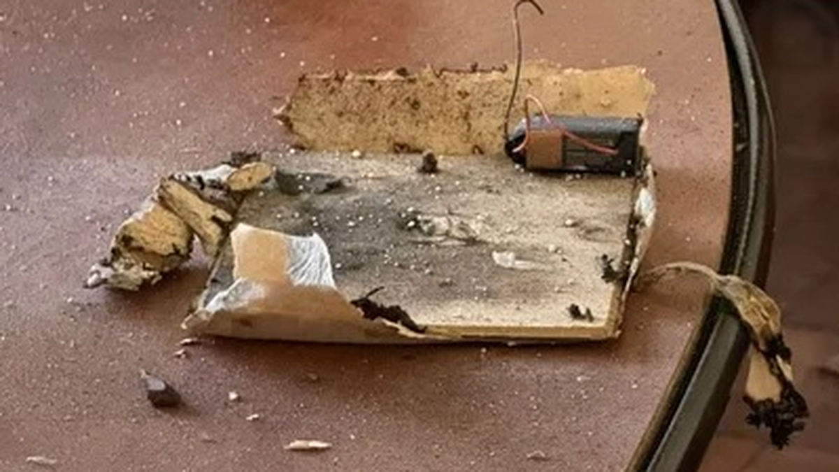 La evaluación determinó que el paquete fue un artefacto autoexplosivo, activado con una batería de 9 voltios. Fue simple pólvora, contenida en un caño de plástico, conectado con dos cables al mecanismo principal.