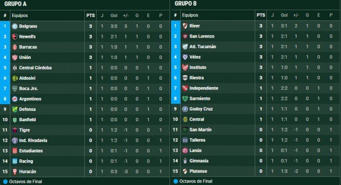 torneo clausura – Posiciones – Fecha 1
